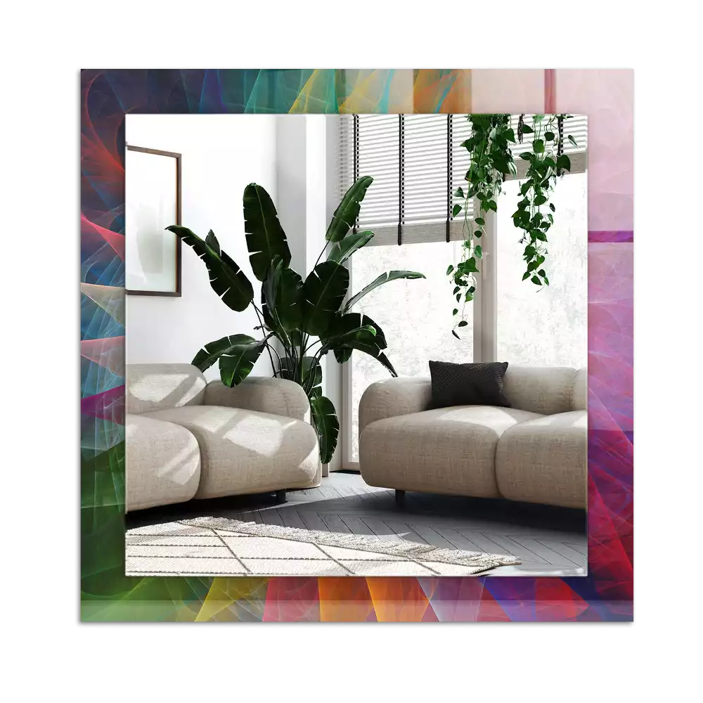 Zrcadlo s ozdobným rámem se vzorem Barevná abstraktní spirála vyniká pečlivě tištěným rámem, který působí jako umělecký detail. Tvarově si můžete vybrat mezi čtvercovým a obdélníkovým provedením – obě varianty působí stylově a vkusně.